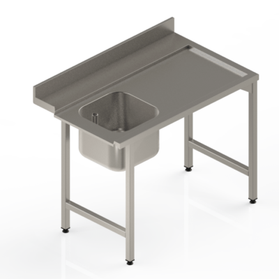 Table de laverie inox à glissement avec plage arrière, bac et dosseret