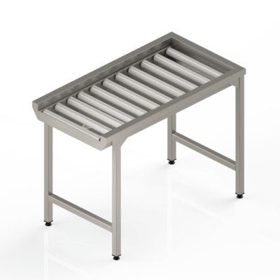 Table de laverie inox à rouleaux avec bac, plage arrière et dosseret