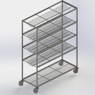Équipé de roulettes Ø 125 nylon inoxydable pivotantes dont 2 à freins